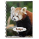 Notebook personalizado com um panda vermelho giro na natureza. Seu nome foi adicionado no script.