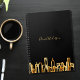 Caderno Espiral Panorama da cidade dourada em preto com letra prof
