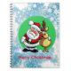 Papai Noel se abraçando com o caderno de renas com um texto feliz de Natal