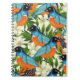 Caderno Espiral Papaya tropical e padrão de pássaros.