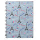 Ilustração perfeita do design de texto de Paris com Torre Eiffel, formas cardíacas tricolor e decoração de bandeira francesa sobre fundo azul para Dia de os namorados