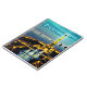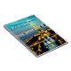 Notebook em ilustração impressionista de Paris sob um céu azul-turquesa profundo, com a Torre Eiffel iluminada em amarelo-ouro