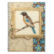 Caderno Espiral Pássaro Castanho e Azul em um Ramo Olhando para Ci