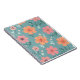 Organize your day with this charming and whimsical floral notebook. The cover features a delightful seamless pattern of hand-painted wildflowers in soft shades of peach, coral pink, and apricot. Set against a soothing muted teal background, the design is accented with delicate white blossoms and leafy green sprigs. This fresh and airy botanical aesthetic is perfect for spring journaling, garden planning, or as a lovely gift for those who enjoy modern cottage core style.