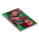 Padrão desenhado à mão com pavões e vários rosas sobre fundo escuro