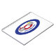 Um design para qualquer um que ama o esporte de inverno de curling. Duas pedras de enrolação, na casa-alvo circular de uma pista de gelo.