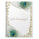 Caderno Espiral Penas de Pavão & Dourado Boho Glam Elegante