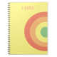 Caderno divertido arco-íris amarelo, vermelho, presente de pêssego caderno em estilo moderno minimalista com nome alvo coral pêssego, amarelo, azul-turquesa.
