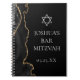 Gato preto e dourado chico decora o lado deste moderno Bar Mitzvah notebook personalizado. O nome do seu filho está escrito em um belo roteiro formal sob a Estrela de David. Perfeito para uma família judia na moda, que celebra o seu filho sendo chamado para a Torá.