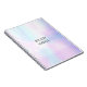 Caderno minimalista moderno holográfico, gradiente de arco-íris, iridescente, com fundo pérola personalizado com seu nome. Projetado por Thisisnotme©