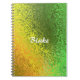 Personalize as formas de nomes do notebook espiral amarelo e verde. Veja os tons coloridos em padrões de abstrato.