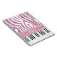 Um design de música personalizada com quadril e moda, com chaves de piano com um padrão de impressão de zebra brilhante, cintilante e cintilante. Personalize o texto com o nome ou o texto de sua escolha na faixa de texto cor-de-rosa delimitada por um efeito metálico impresso. Perfeito para pianista, estudante de piano ou amante de piano. Observe que esta é uma imagem impressa de brilho rosa, não há brilho real neste design.