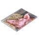 Um design fotográfico de um porco Tamworth adormecido.