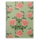 Caderno Espiral Pink Floral Pattern on Green Background | Seamless