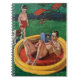 Artista: Olhares fixos irritados do menino dos Amos Sewell | no pai que relaxa em sua piscina vadeando