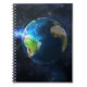 Notebook mostrado com uma impressão de foto do planeta Terra. Personalize este item ou comprar como está. Imagem do stock