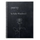 Um desenho simples, elegante de uma abertura do rosebud em um fundo de papel preto. O título e o nome podem ser mudados a qualquer coisa que você prefere.