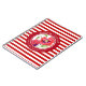 Projetado com base na minha ilustração floral de aquarela de papoila vermelha. Eu pintei estas adoráveis e vibrantes papoilas vermelhas, mas delicadas, do meu quintal, Eu só tive que capturá-las porque elas não floresciam tanto. É um belo lembrete de um belo dia de Verão, e espero que também o possam aproveitar. O design tem um círculo externo vermelho escuro com textos em cima e baixo e um padrão de listras brancas vermelhas no fundo. É adequado para o aniversário, o aniversário ou o chá de panela. Personalizou isso com seus próprios textos na minha loja Zazzle.