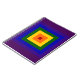 Mostre seu amor pela cor com um arco-íris geométrico. Uma série de quadrados vermelhos, laranja, amarelo, verde, azul, índigo e violeta irradia do centro desta design festiva. Imagem de pixel 5400 x 5400 criada digitalmente. Copyright ©2011 Claire E. Skinner, Todos os direitos reservados.