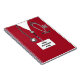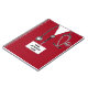 Notebook de enfermeira com um hospital vermelho esfrega design com um estetoscópio e uma faca do exército suíço. Para personalizar editar texto para adicionar nome e credenciais médicas.