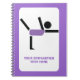 Presentes de ginástica, notebook de ginástica que mostra um ícone preto minimalista de uma ginasta vestindo um leotard roxo com uma borda roxa ao redor. Personalize-o e altere o texto com monograma, nome ou mensagem. As ideias perfeitas para o atleta de ginástica, amante ou aqueles que fazem isso como hobby. Veja muitas designs na nossa loja de presentes esportivos.