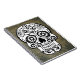 Crânio preto e branco de tendência com fundo ardente. O crânio de açúcar tem um olho na testa.