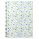 Notebook espiral com um padrão brilhante e alegre de rabisco de primavera floral em tons azuis e verdes.