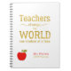 O caderno personalizado de professores com maçã vermelha e o roteiro de tipografia do ouro inspirador citam "Professores mudam o mundo um aluno de cada vez". Insira seu nome / texto nos pontos!