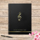 Este moderno e elegante notebook preto apresenta uma clave tripla em ouro falso. Perfeito para escritórios de escolas de música, professores de música, estudantes e muito mais. Personalize-o com seus próprios detalhes e utilize a ferramenta de edição para fazer outros ajustes, como tamanho e posicionamento da fonte.