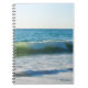 Bloco de notas com foto de uma onda quebrando perto da praia