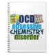 Presente engraçado do professor da química que lê a desordem obsessiva da química de OCD ao lado do cheio das taças da ciência dos produtos químicos para uma experiência. Um major legal da química atual para um cientista.
