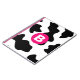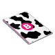 Quirky cool black and white cow spots pattern with bold hot pink monogram.
