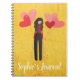 Um gráfico bonito de uma garota segurando um monte de balões em forma de coração. Bonita e branca e esbranquiçada contra um fundo de ouro texturizado.