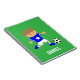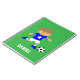 Este bloco de notas bonito é excelente para rapazes que são fãs de futebol ou jogadores de futebol! Ele vem com um garoto giro em uma camisa de futebol azul de tendências com estrelas, listras brancas nas capas, shorts brancos e botas de futebol azul combinando, com pinos se preparando para chutar uma bola de futebol para gol! Personalize com o nome da criança.