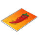 Uma pimenta de desenho animado em um quebra-cabeça de serra. Fundo vermelho e amarelo. Design original.
