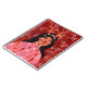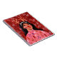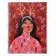 Um retrato moderno atraente de uma mulher vestida de Rudolf, a rena. Um fundo vermelho alegre com perereca de bagas. A mulher está vestindo um suéter de Natal rosa com árvores de Natal e renas. Seu cabelo preto se destaca bem contra o fundo vermelho. Tinta acrílica original com lápis em papel. Arte original de Caroline Bonne Müller