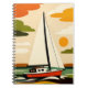 Caderno Espiral Retro Sailboat Sunset Illustration
