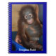 Órfão doce do orangotango do bebê que burped após sua garrafa. Esta fotografia cria um caderno espiral especial para as pessoas que como para salvar animais selvagens. O artista é um voluntário no centro de assistência na ilha de Bornéu e doa-a lucros a esta facilidade. você pode promover no órfão em www.orangutan.org