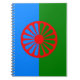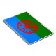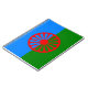 Esta design apresenta a bandeira romani, que é a bandeira internacional das pessoas romanichéis. A bandeira é constituída por um fundo azul e verde, representando os céus e a terra, respectivamente; contém também uma chacra vermelha de 16 raios, ou uma cartela, no centro, que representa a tradição itinerante das pessoas romanichéis e é também uma homenagem à bandeira da Índia. A bandeira foi aprovada pelos representantes de várias comunidades romanichéis no primeiro Congresso Mundial Romani (WRC), realizado em Orpington em 1971.