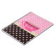 Um caderno cor-de-rosa e marrom feminino do teste padrão de bolinhas com um teacup cor-de-rosa bonito aparou com uma beira na moda do coração, e uma fita cor-de-rosa bonito amarrada em um arco no punho. Personalize adicionando seu nome. Aperfeiçoe o presente para a menina feminino que amaria trazer um tea party do divertimento onde que vai!