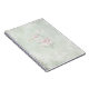 Um notebook com um design de textura vintage com fundo branco cinza esmaecido e um delicado padrão de flores, folhas e rosas. Este papel de aparência antiga e vestida parece dar-lhe um aspecto envelhecido.