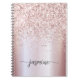 Caderno personalizado com nome em monograma metálico brilhante em rosa com glitter dourado. Este design apresenta seu primeiro nome em uma tipografia de letra manuscrita bonita com cauda ornamentada em folha metálica cor de rosa dourada com uma borda cintilante. São fáceis de personalizar e podem ser usados como Livro de Receitas, Diário Pessoal, Caderno de Desenho, Revista e mais. Também é um presente feminino elegante para aniversário, dia das mães, casamento, chá de noiva, festa de aniversário de 16 anos e chá de bebê, formatura, trabalho, volta às aulas, trabalho profissional e para quem ama estilo glamoroso.