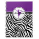 Caderno selvagem da dança da bailarina do impressão da zebra no roxo. Uma silhueta do dançarino de balé levanta dentro de um círculo e há uma bandeira das "bolinhas" para o contraste. Adicione seu próprio nome antes de pedir! Adicionalmente, use "personalizam-no" botão para mais opções, incluindo uma pia batismal diferente!