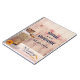 Um caderno do planejador de casamento com um tema rústico do país. Uma lata velha de leite enferrujante com uma flor de laranja bonito ao lado. Trigo e papoilas vermelhas desbotadas no fundo colocadas sobre um painel de madeira esmaecido. Personalize com os nomes dos casais e a data do casamento.