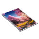 Aproveite um momento de encantamento absoluto como as cores quentes do pôr do sol enrolam uma lagoa adorável com sakura em floração de cheio. As delicadas flores cor-de-rosa das sakura dão um belo contraste contra a luz ouro do sol neste trabalho de arte digital, que retrata a fascinante beleza da sinfonia da natureza.