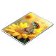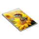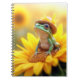 Um sapo giro vestindo um pequeno chapéu sentado sobre um girassol amarelo brilhante, cercado por um fundo turvo de flores semelhantes