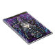 Este notebook branco apresenta uma vibrante pintura a óleo de uma bruxa embaçada.