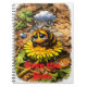 A notebook featuring a caricature of a sad bee and the words Save the Bees.
