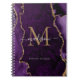 Notebook Dourado violeta roxo moderno Glitter Geode Monograma Nome do Script Inicial