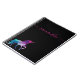 Um unicórnio de fantasia em turquesa, roxo e um pouco rosa para uma garota adolescente. Um fundo preto chic. Personalize e adicione seu nome. O nome é escrito com um grande estilo escrito à mão moderno. Letras cor-de-rosa quente. Para manter as hastes, exclua apenas o nome da amostra, deixe os espaços ou emoji na frente e depois do nome.